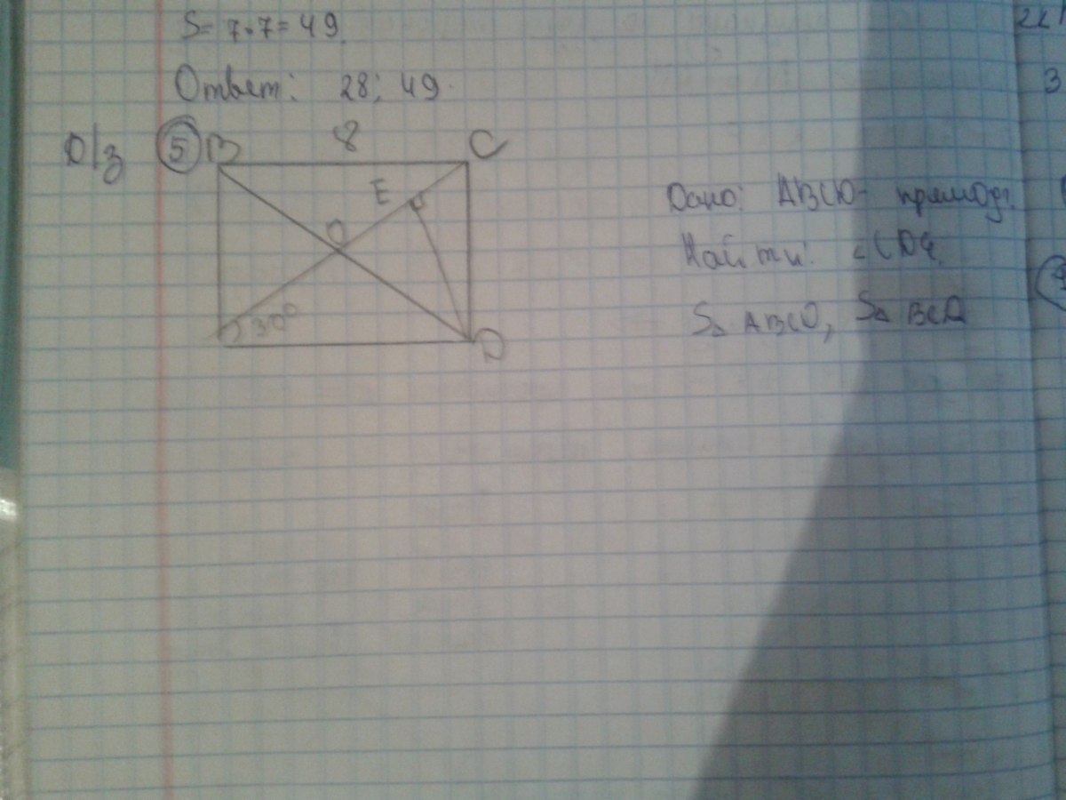 угол CDE = 30 градусов, площадь ABCD = 32 площадь BCD = 16