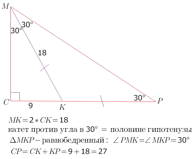 если вычислить углы, то можно найти равнобедренный треугольник...