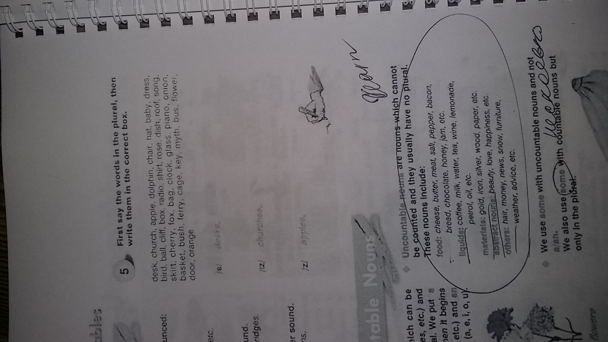 [iz]-churches, dresses, boxes, roses, dishes, foxes,glasses, bushes, cages, buses, oranges