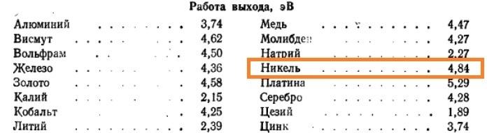 1. На пластину из никеля попадает электромагнитное излучение, энергия фотонов которого равна 8 эВ. При этом в результате фотоэффекта из пластины вылетают электроны с максимальной энергией 3 эВ. Какова работа выхода электронов из никеля?