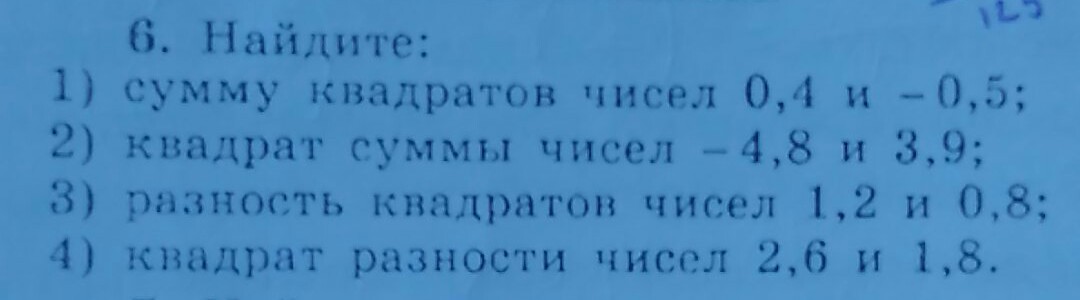 1) 0,4^2 + (- 0,5^2) = 0,15 + 0,25 = 0,4