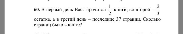3) 1 - (1/2 + 1/3) = 1 - (3/6 + 2/6) = 1 - 5/6 = 1/6 (книги) составляет 37стр.