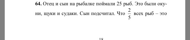 1) 25 * (2/5) = 10 окуней поймали отец с сыном;