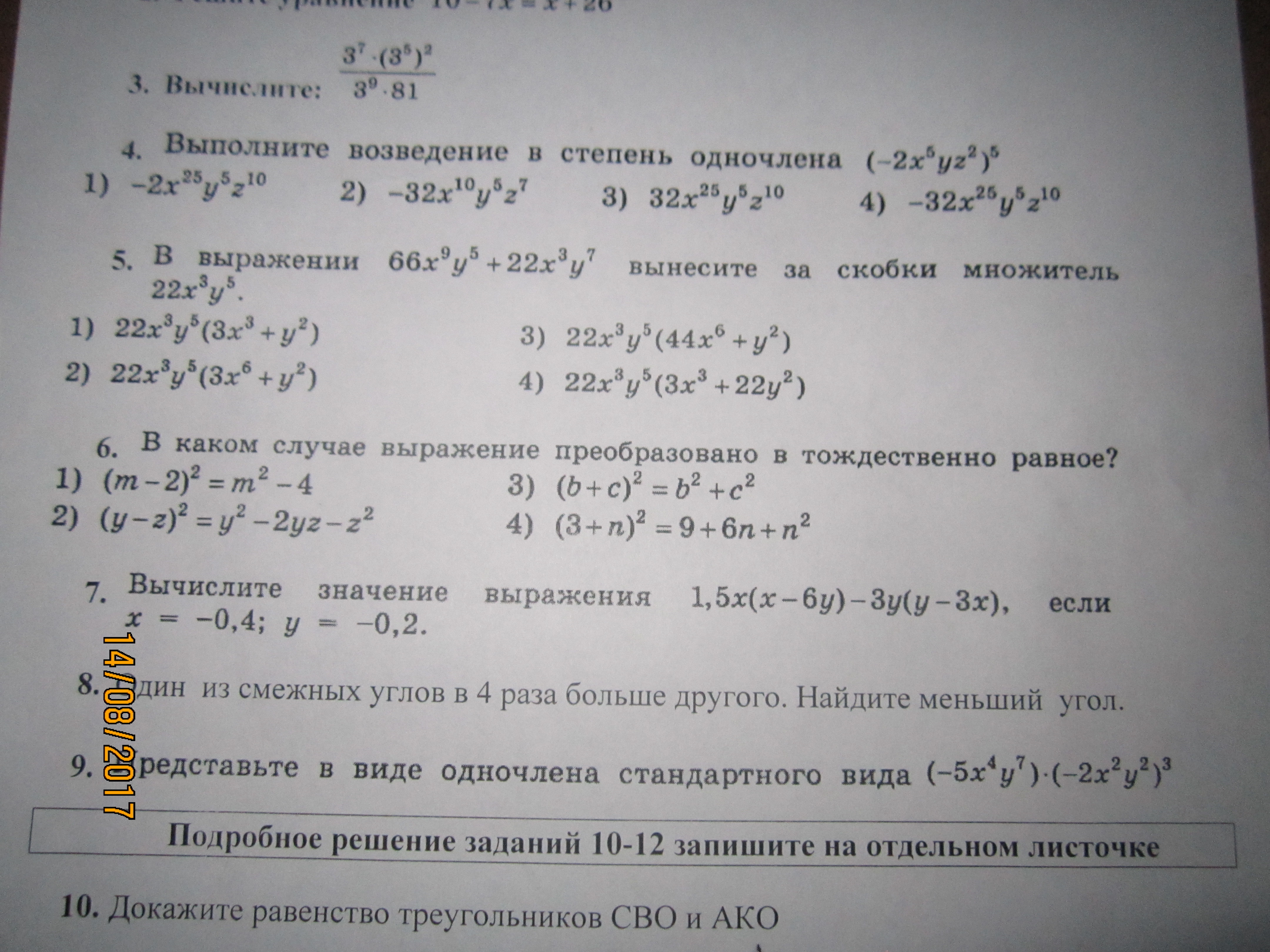 Я тебе на мэйл отправил свой адрес, а здесь я писал решение примера, а в скобках № правильного из данных