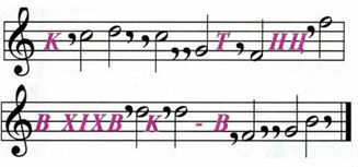 Загадка об одном из танцев зашифрована с помощью музыкальных символов. Разгадай шифр, в ответ запиши название танца.
