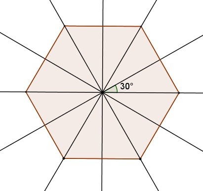 Значит, правильный многоугольник с наименьшим числом сторон и углом 30° между осями - правильный 6-угольник.