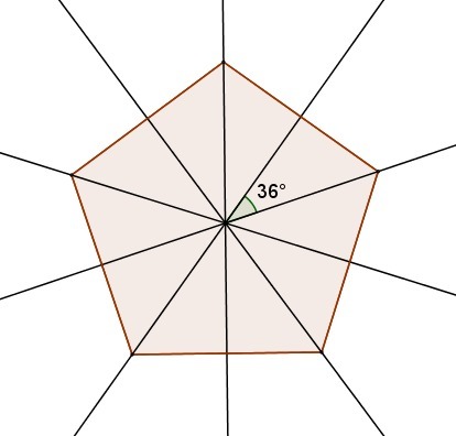 3) Правильный 5-угольник имеет 5 осей симметрии, каждая проходит через вершину и середину противоположной стороны и угол между ними не меньше 36°.