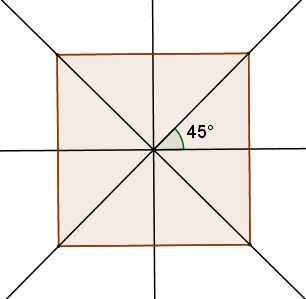 2) Квадрат имеет 4 оси симметрии, каждая проходит либо через противоположные вершины либо через середины противоположных сторон, и угол между любыми двумя осями не меньше 45°.