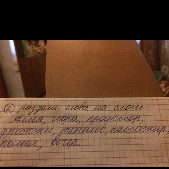 а-лле-я,ссо-ра,про-фе-ссор,дро-жжи,те-ннис,па-сса-жир,по-лил,ве-чер.