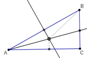 Вершины острых углов ограничивают гипотенузу. Точка, равноудаленная от концов отрезка, лежит на серединном перпендикуляре к нему.