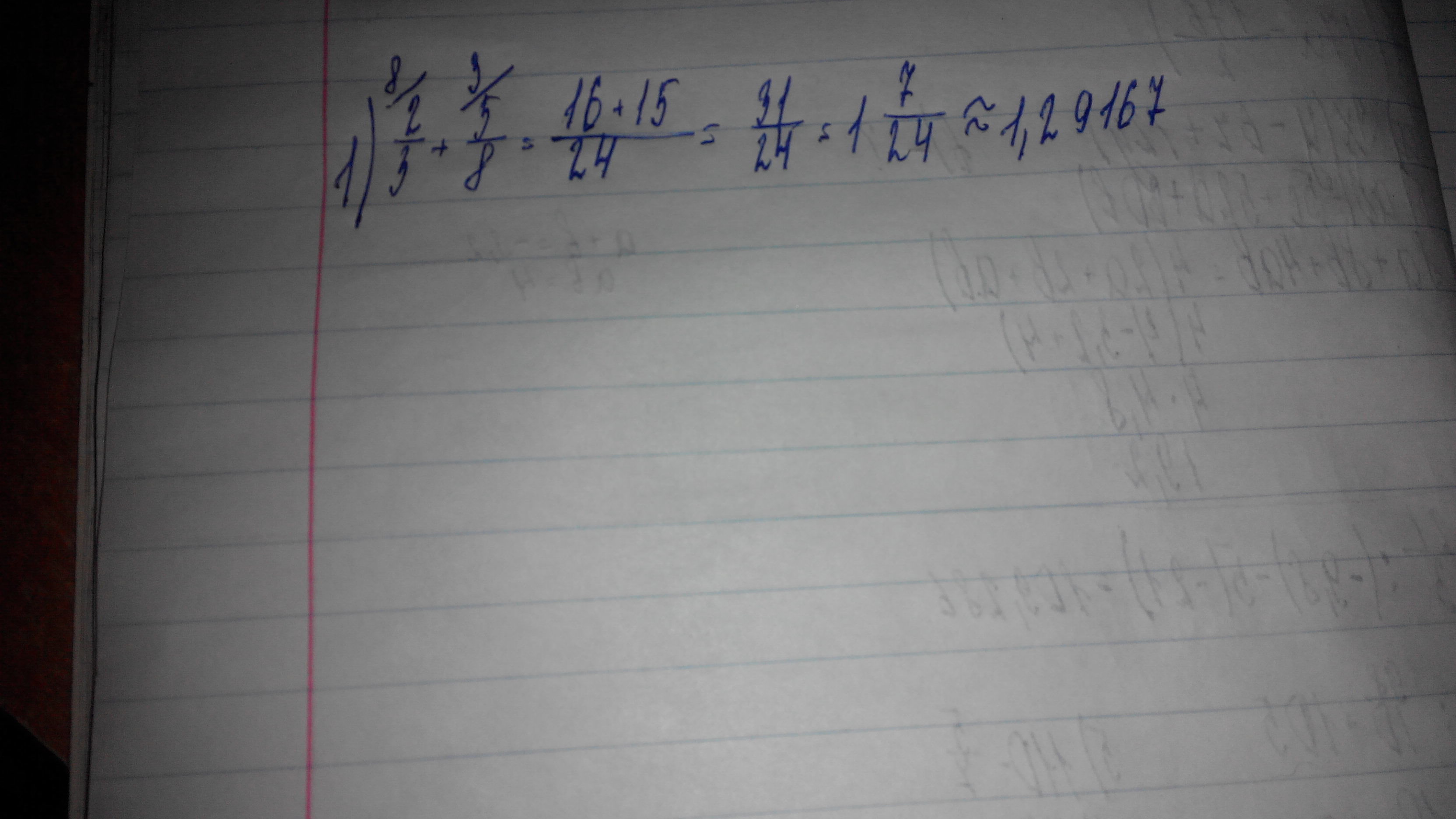 16/24 + 15/24 = 31/24 = 1 целая 7/24