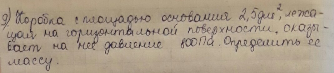 У меня получилось 800Па×0,25м2/10Н/кг=20 кг????