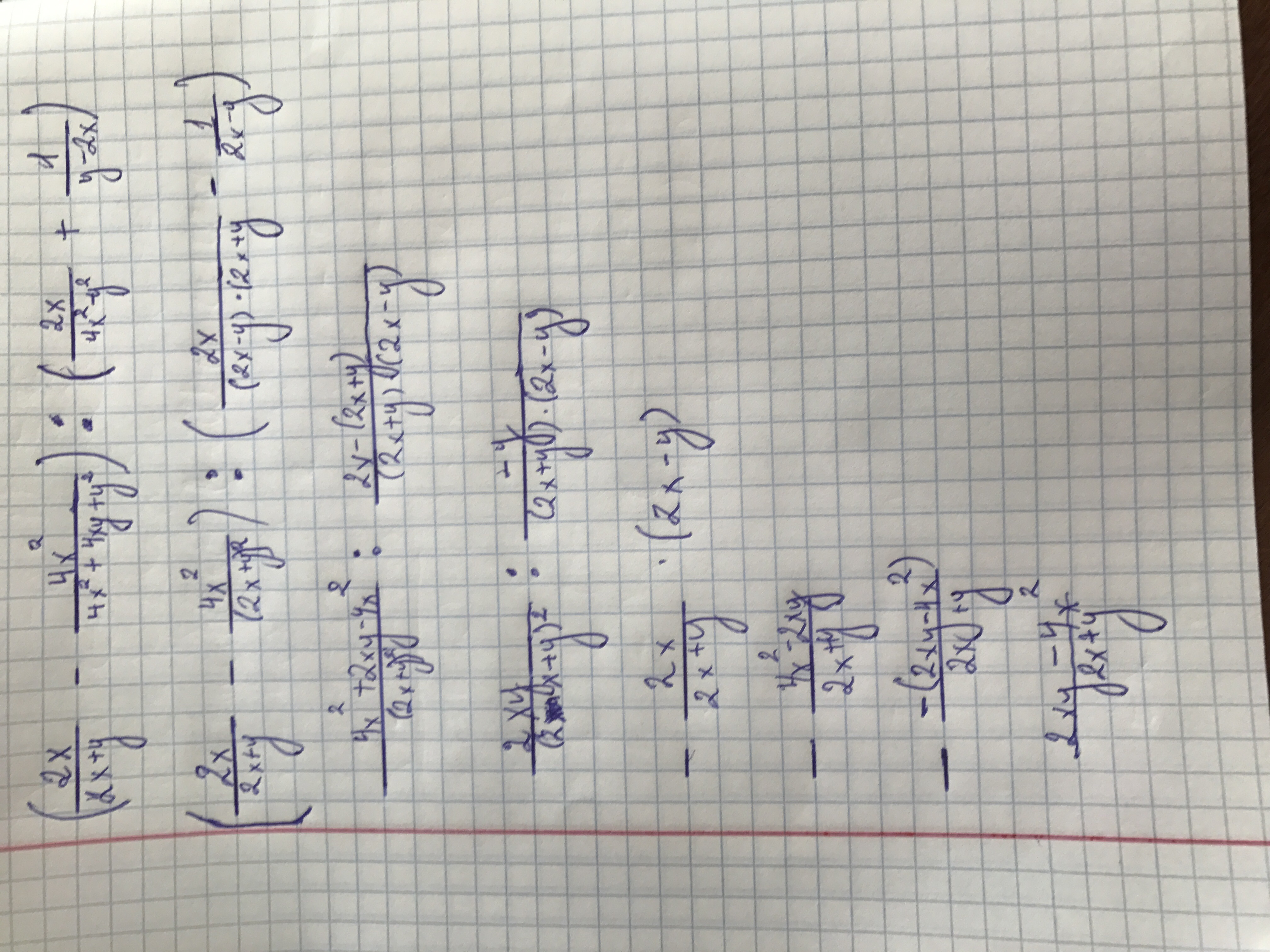 2)2x/(2x-y)(2x+y)-1/(2x-y)=(2x-2x-y)/(2x-y)(2x+y)=-y/(2x-y)(2x+y)