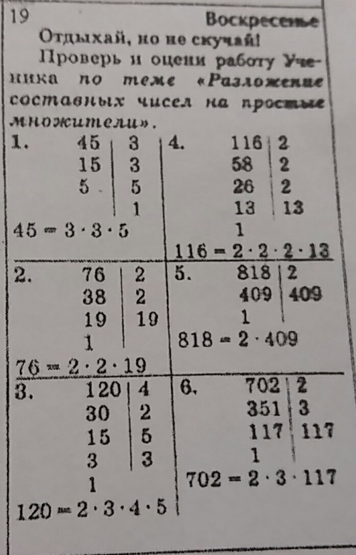 Проверь и оцени работу Ученика по теме "Разложение составных чисел на простые множители". Помогите пожалуйста очень нужно!