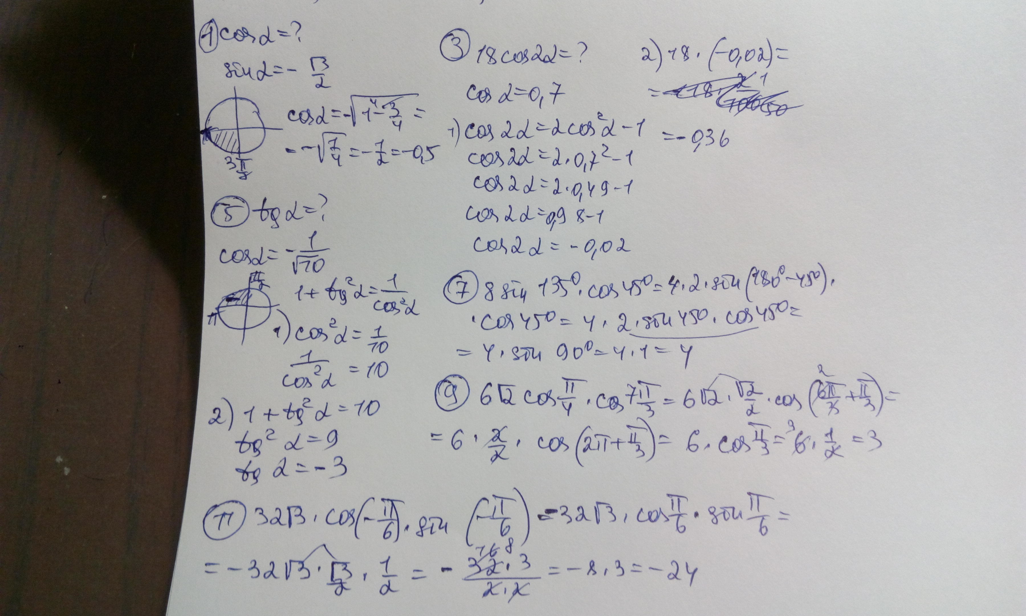 18cos2a=18*(2cos²a-1)=18*(2*0,49-1)=18*(0,98-1)=18*(-0,02)=-0,36