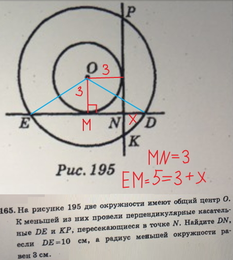 что в получившемся равнобедренном треугольнике радиус меньшей окружности является высотой к основанию =10