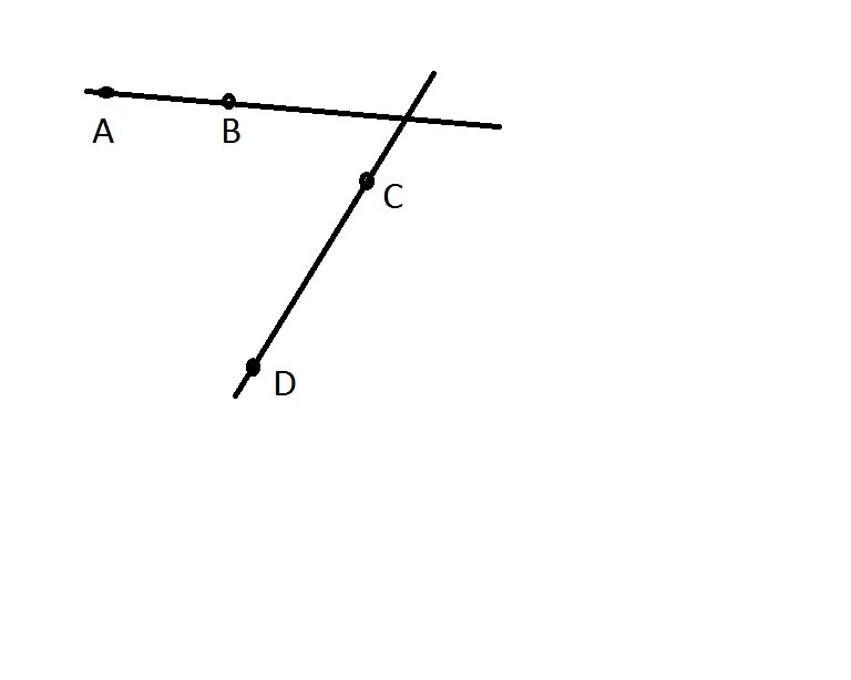 .Отметьте четыре точки А, B, C, d так, чтобы луч АВ пересекал прямую СD, а луч СD не пересекал прямую AB.