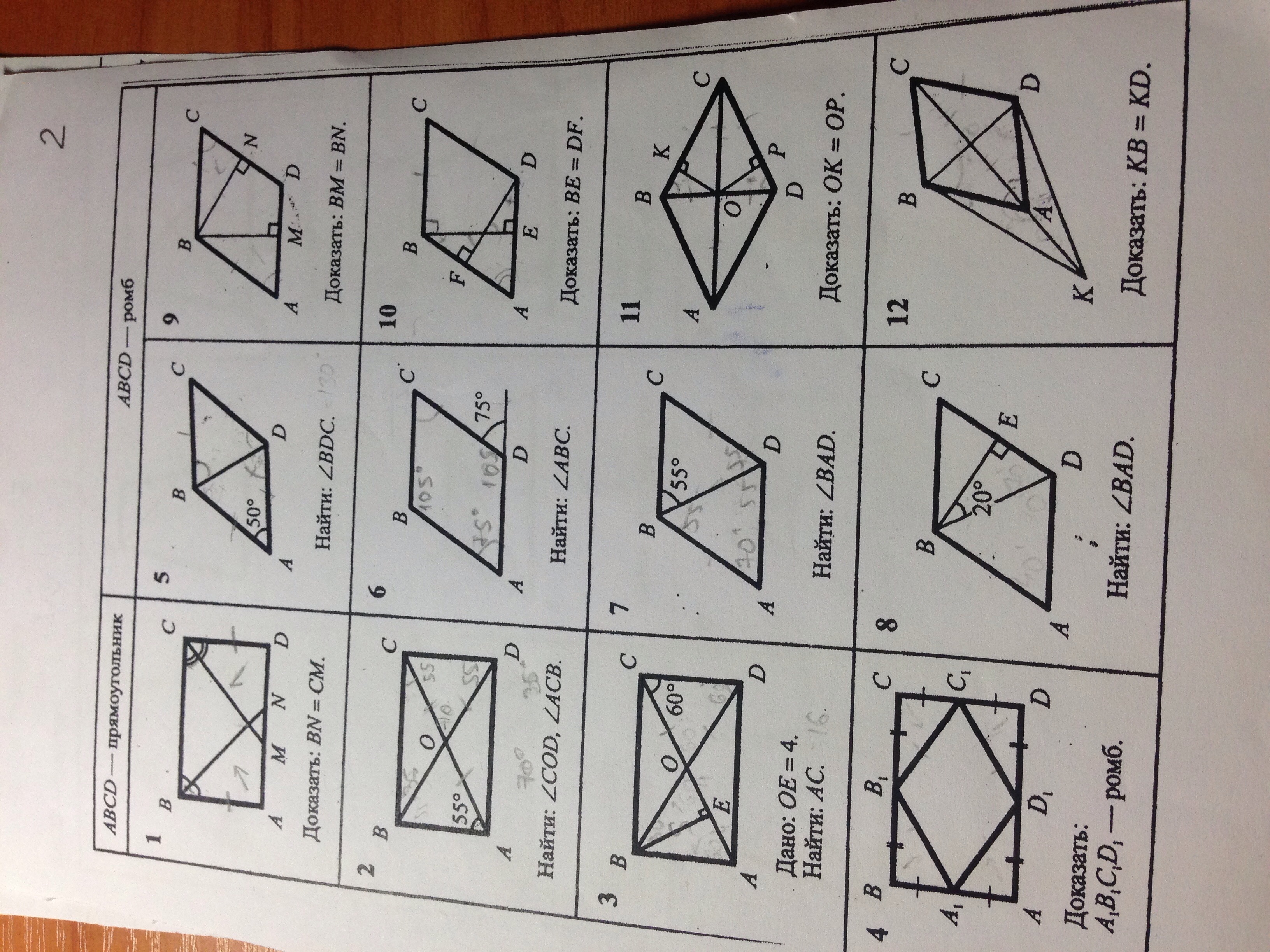 2) У прямоугольника все углы прямые, ∠ABC=90. ∠ACB=90-∠BAC=90-55=35 (сумма острых углов прямоугольного треугольника равна 90). Диагонали прямоугольника равны и точкой пересечения делятся пополам, AO=BO. Треугольник ABO - равнобедренный, ∠ABO=∠OAB=55. ∠BOA=180-∠ABO-∠OAB= 180-55*2=70. ∠COD=∠BOA=70 (вертикальные углы).