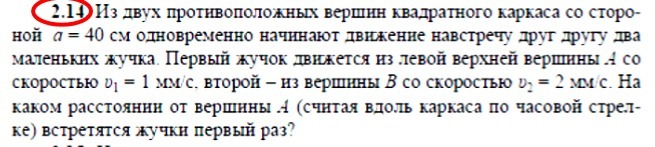 От вершины А первый жук встретится со вторым пройдя 133 мм.