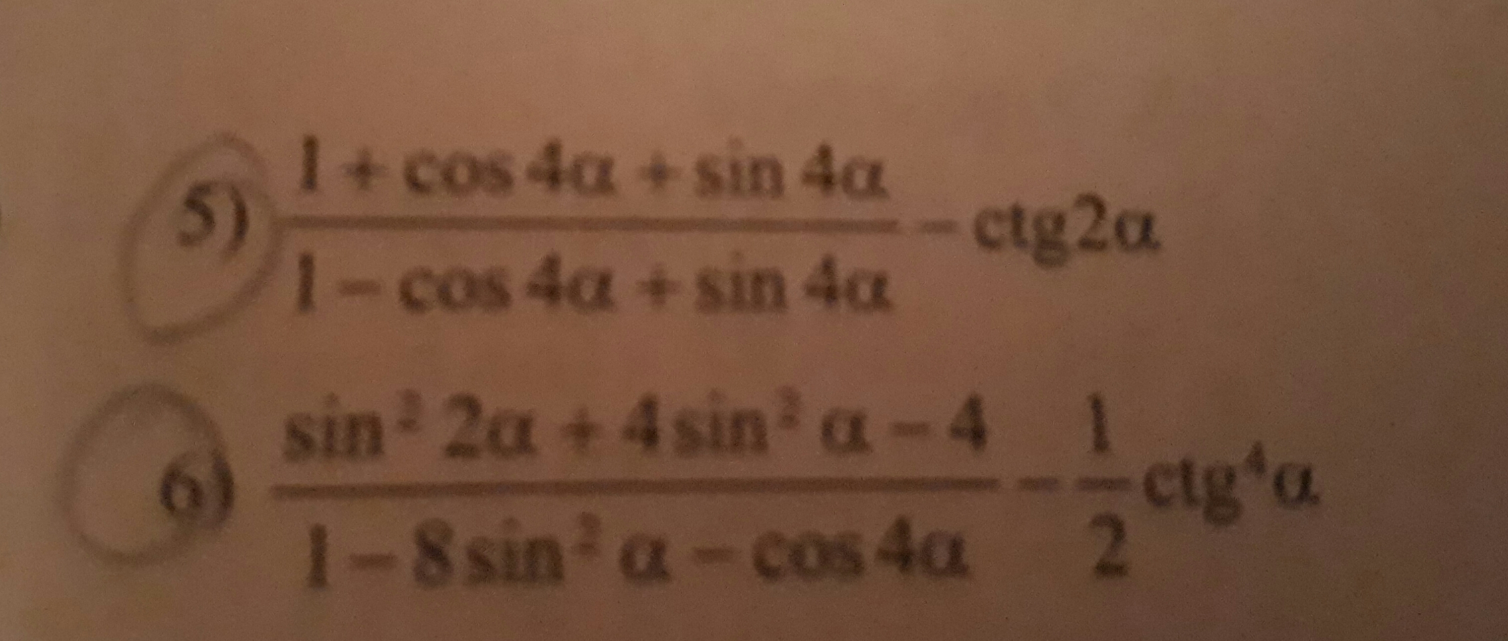 (sin²2a+4(sin²a-1))/(2sin²2a-8sin²a)-1/2*ctg^4a=