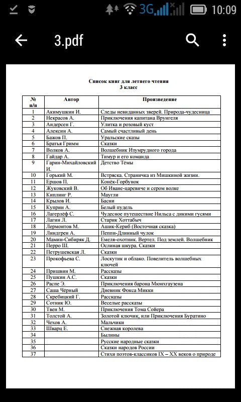 Вот список литературы перед четвёртым классом