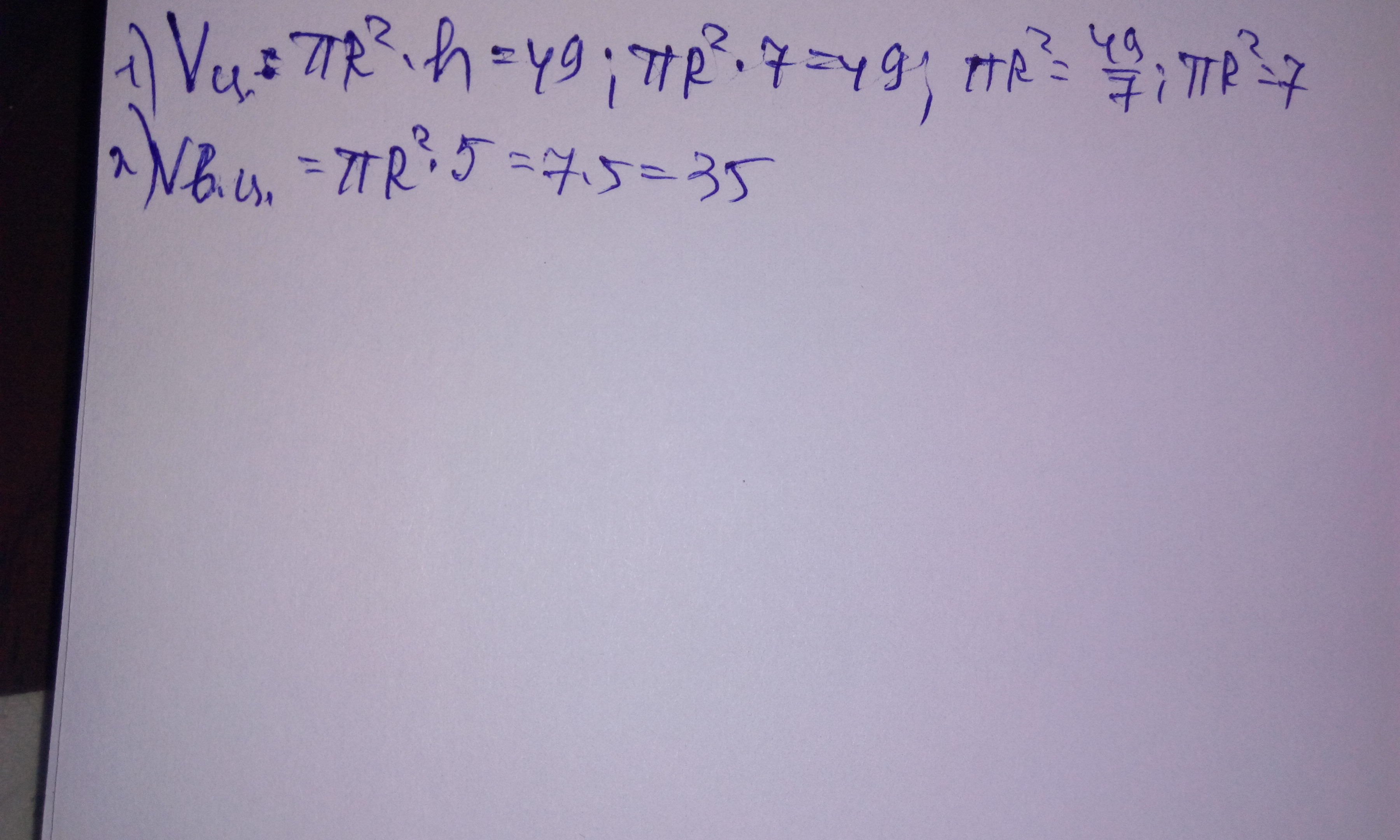 В цилиндре проведено сечение, параллельное основаниям и делящее высоту на два отрезка длиной 5 и 2, считая от верхнего основания. Найдите объём верхнего отсечённого цилиндра, если объём всего цилиндра равен 49