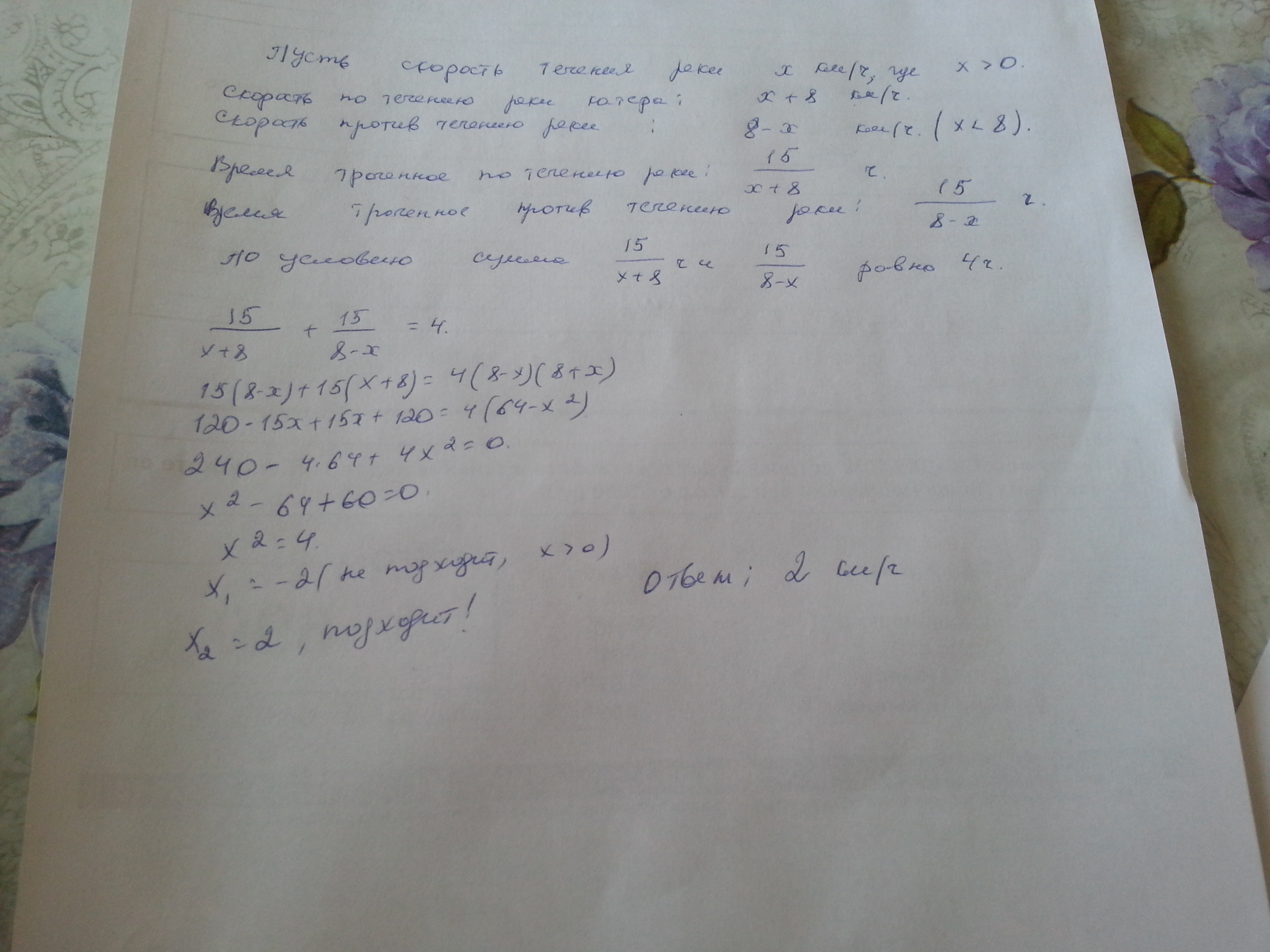 15 / ( 8 + х ) + 15 / ( 8 - х ) = 4