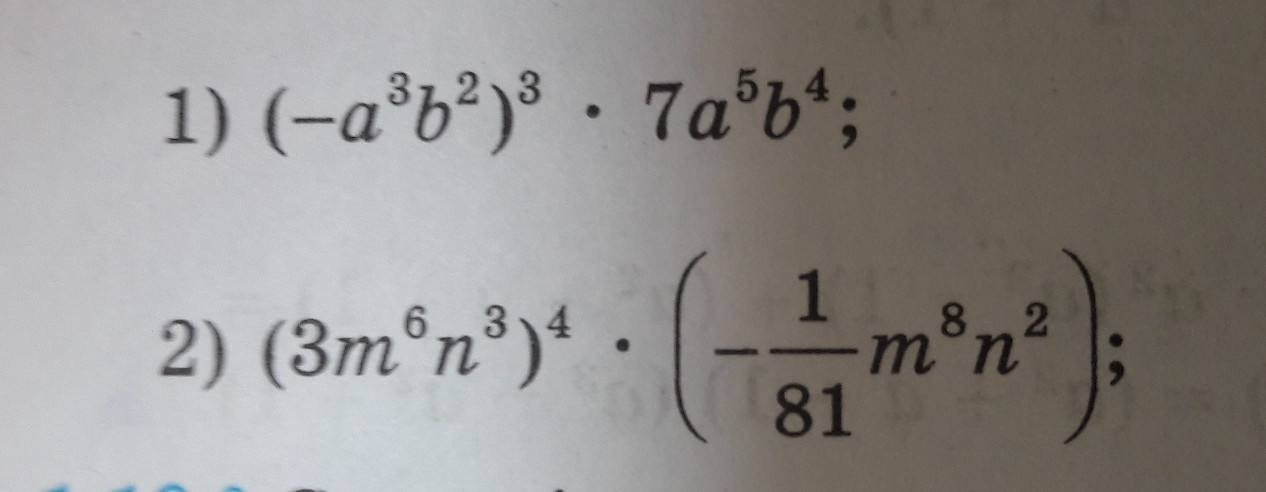 (3m⁶n³)⁴*((-1/81)m⁸n²)=3⁴m²⁴n¹²*((-1/81)m⁸n²=-m³²n¹⁴