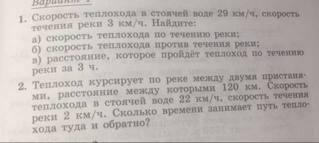 б) 29-3=26км/ч скорость теплохода против течения реки