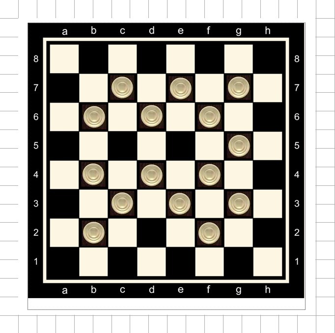 Какое максимальное число шашек можно поставить на чёрных полях шахматной доски размером 8×8 так, чтобы каждую шашку била хотя бы одна из остальных? Напомним, что одна шашка бьет другую, если они стоят на соседних по диагонали клетках так, что следующая клетка за второй шашкой была свободна.