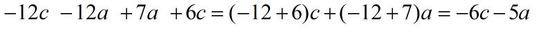 видишь -12с и 6с уних буквы одинаковые так как у большего из них то есть у -12с знак минус то -12с+6с= -6с то же самое касается и -12а и 7а ответ = -6с -5а
