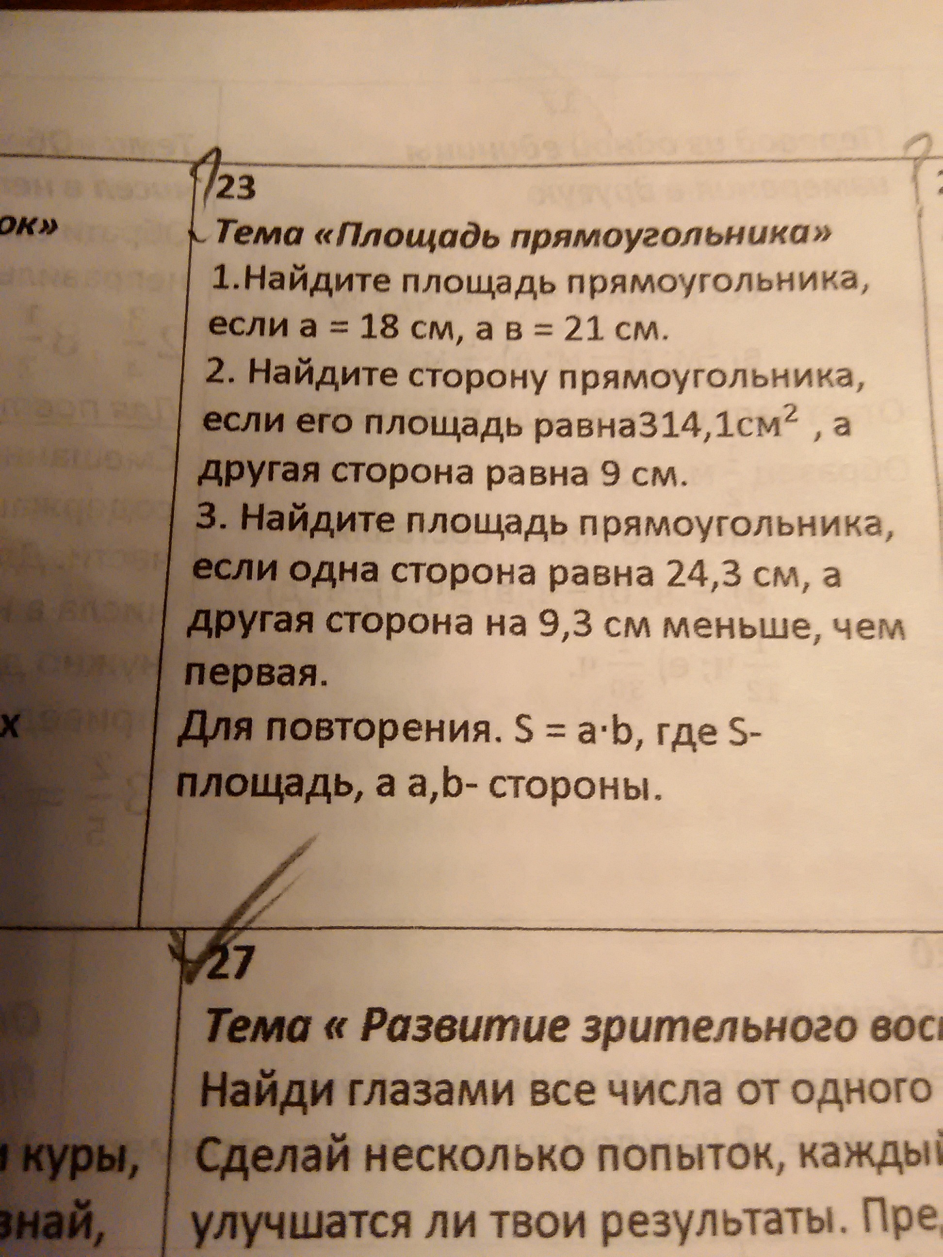 S = a*b = 18*21 = 378 см² - ОТВЕТ