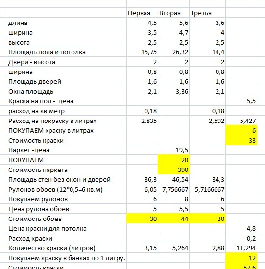 3. Самое сложное с обоями. Хотя площадь рулона - 12*5 = 6 кв.м, но эти 12 метров плохо делятся на ЦЕЛЫЕ ПОЛОТНА по 2,5 м.