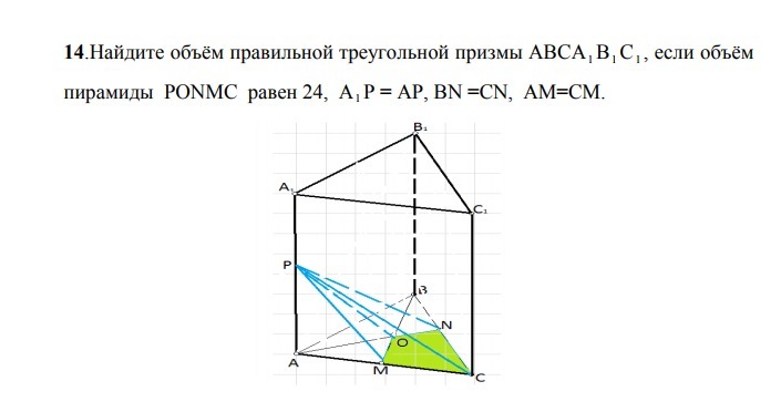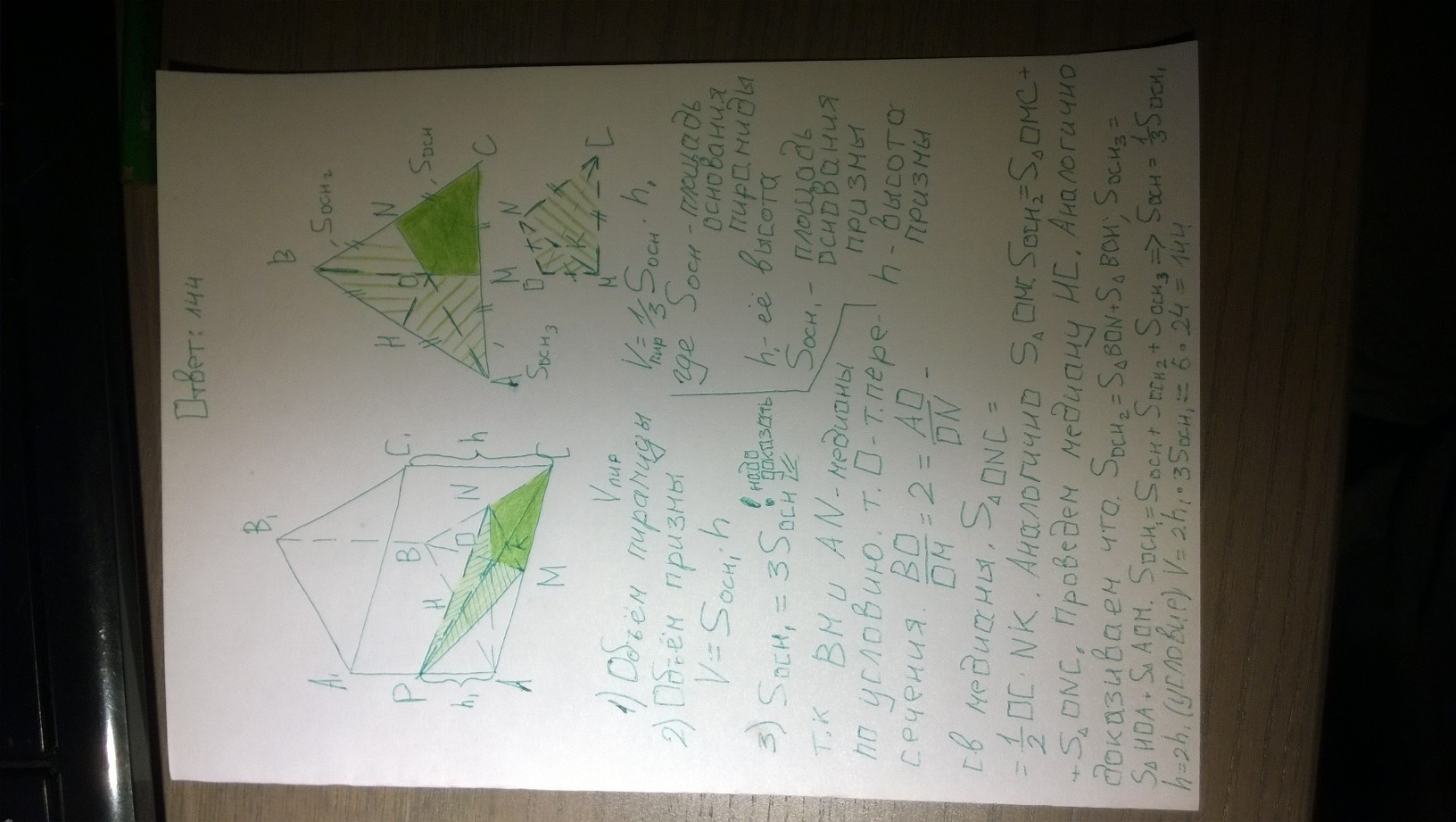 В котором мы учитываем, что основание пирамиды в 3 раза меньше призмы