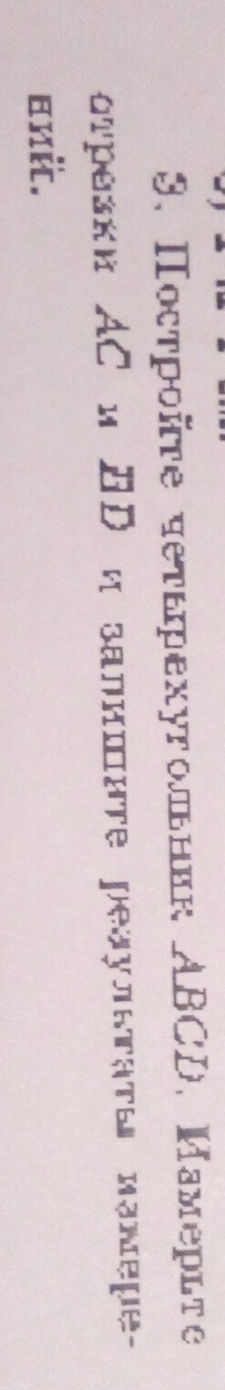 Постройте четырехугольник АВСД. Измерте отрезки АС и ВД и запишите результаты измерения