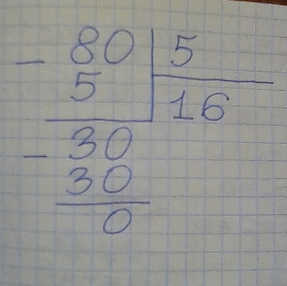 80 это 50 + 30, поэтому 80÷5= 50÷5 + 30÷5 = 10 + 6 = 16