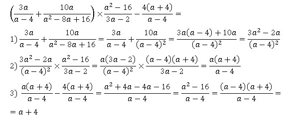 ( 3а/а-4 + 10а/а'2-8а+16) * а'2-16/3а-2 - 4(а+4)/а-4