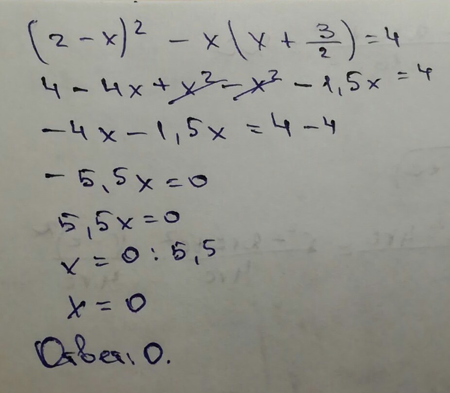 4 - 4x + x² - x² - 1,5x = 4; - 5,5x = 0; x = 0