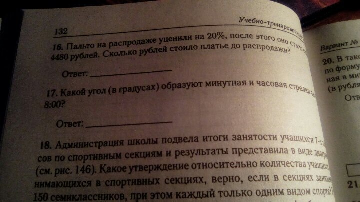 т.к. часы - окружность, то они составляют 360° и делятся на 12 частей. следовательно, 360:12×8=240°