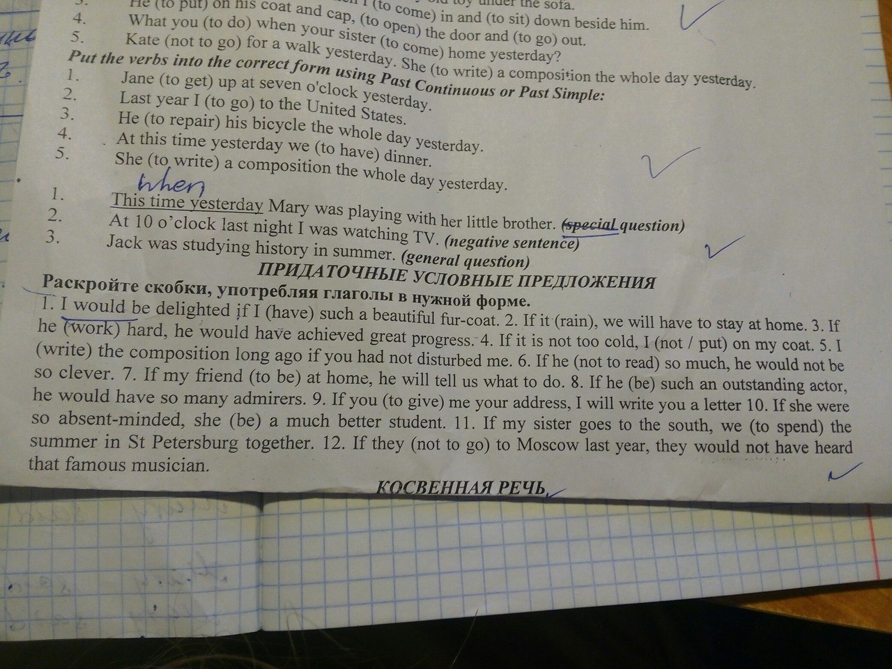 Помогите.Нужно раскрыть скобки употребляя глаголы в нужной форме (Придаточные и условные предложения)Фото ниже