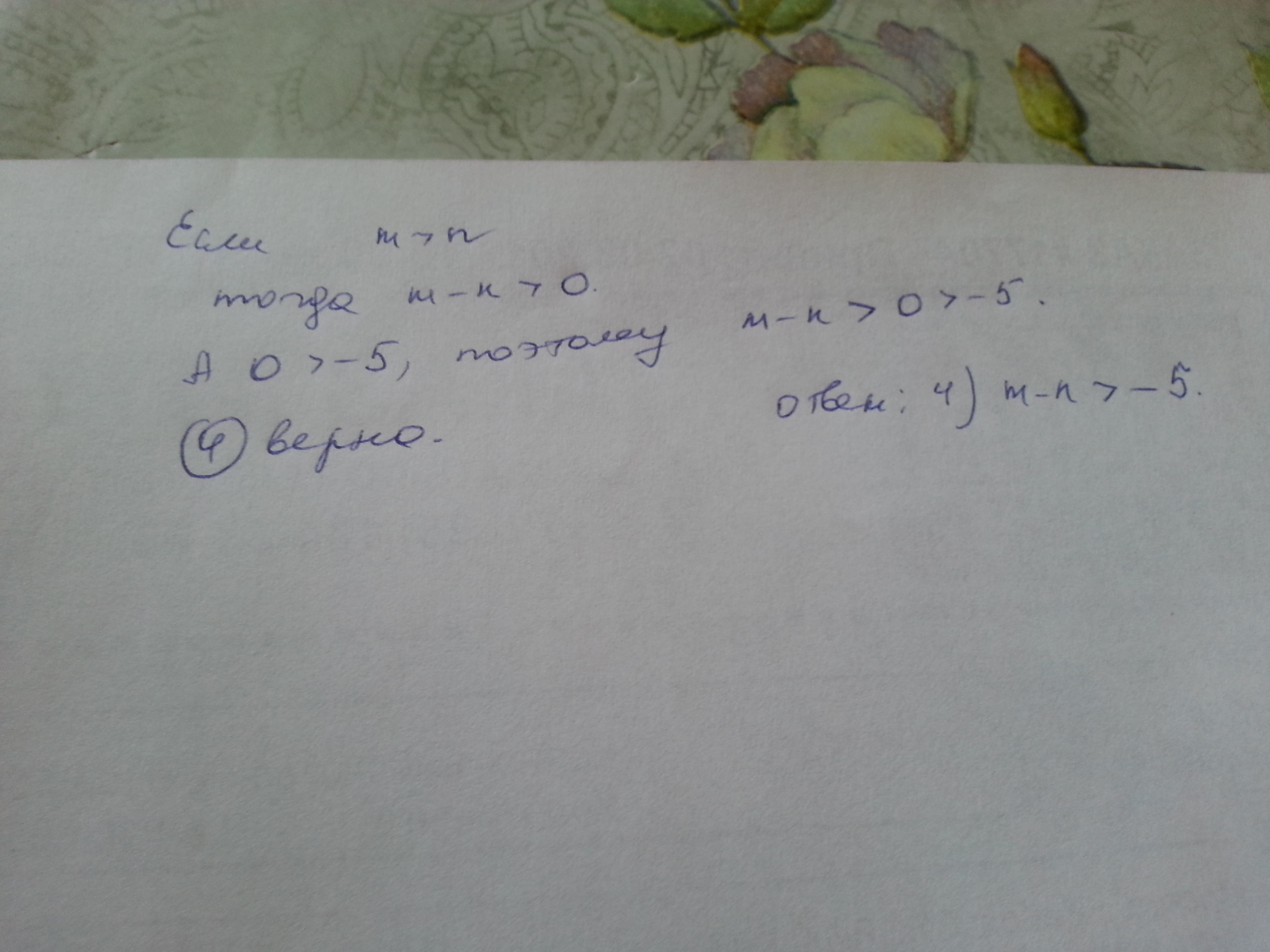 2 Известно, что m > n. Укажите верное неравенство. 1) m n < 1 mn<1 2) m − n n < 0 m−nn<0 3) m n > 1 mn>1 4) m − n > − 5