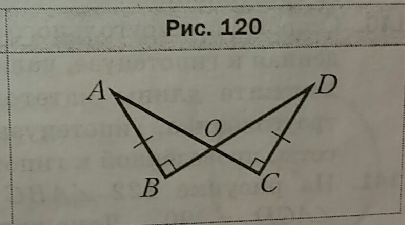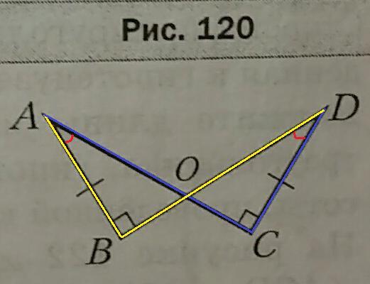 На рисунке 120 ∠ABO = ∠DCO = 90°, AB = CD. Найдите AO, если DO = 11см.