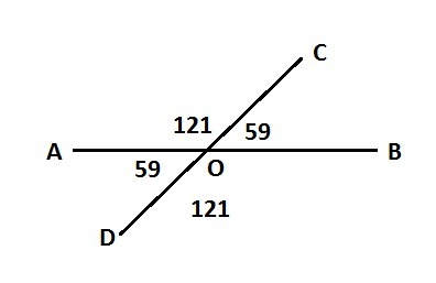 ∠AOC = 59+62 = 121°