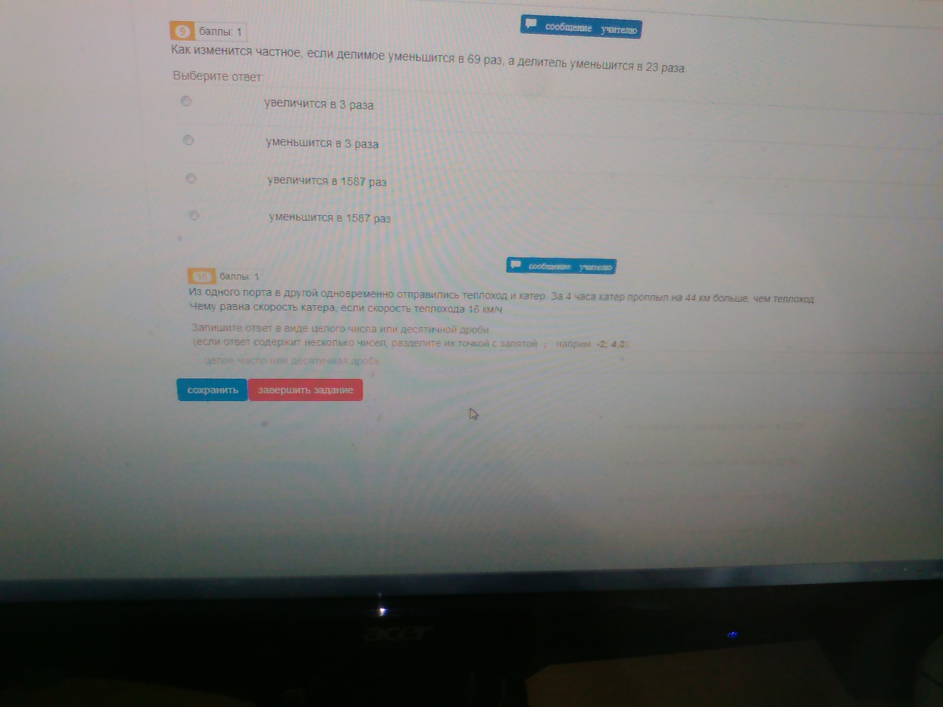делитель увеличился в 3 раза,значит частное уменьшилось в 3 раза
