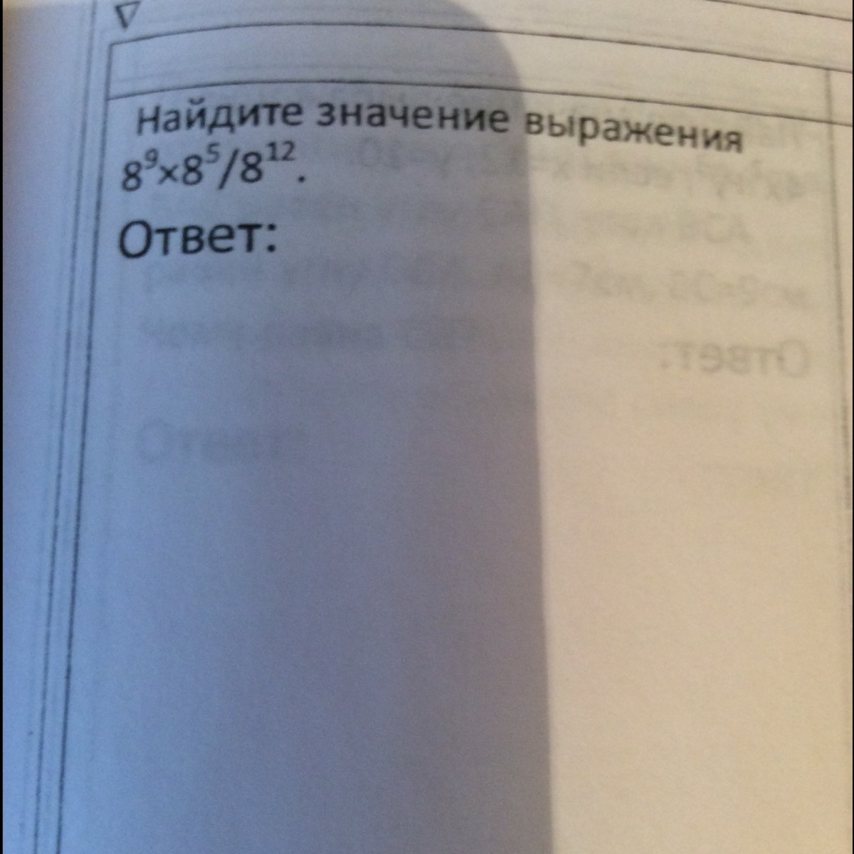 8^9×8^5/8^12= 8^9+5/8^12=8^14/8^12=8^14-12=8²=64