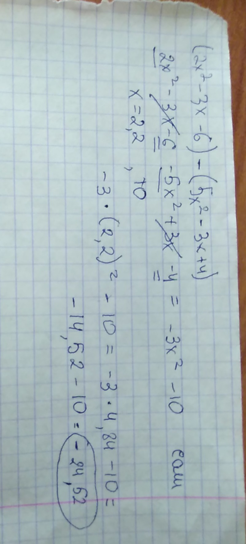 Если x=2,2, тогда -3x²-10=-3×(2,2)²-10=-3×4,84-10=-14,52-10=-24,52