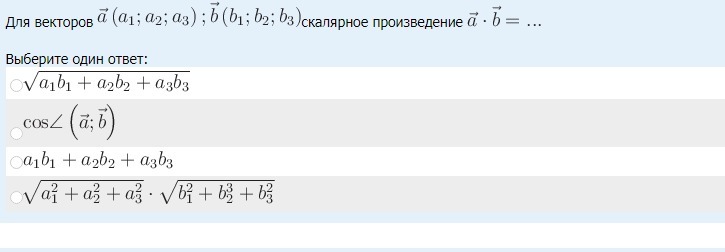 1) Скалярный произведения вектор а*b=a1b1+a2b2+a3b3.