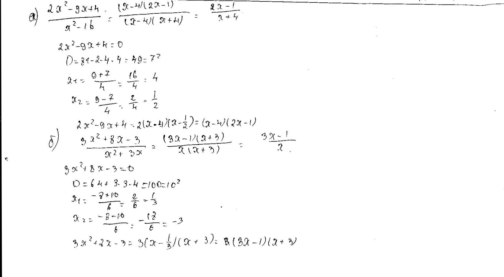 (3х'2+8х-3)/(х'2+3х)=(3x-1)(x+3)/[x(x+3)]=(3x-1)/x