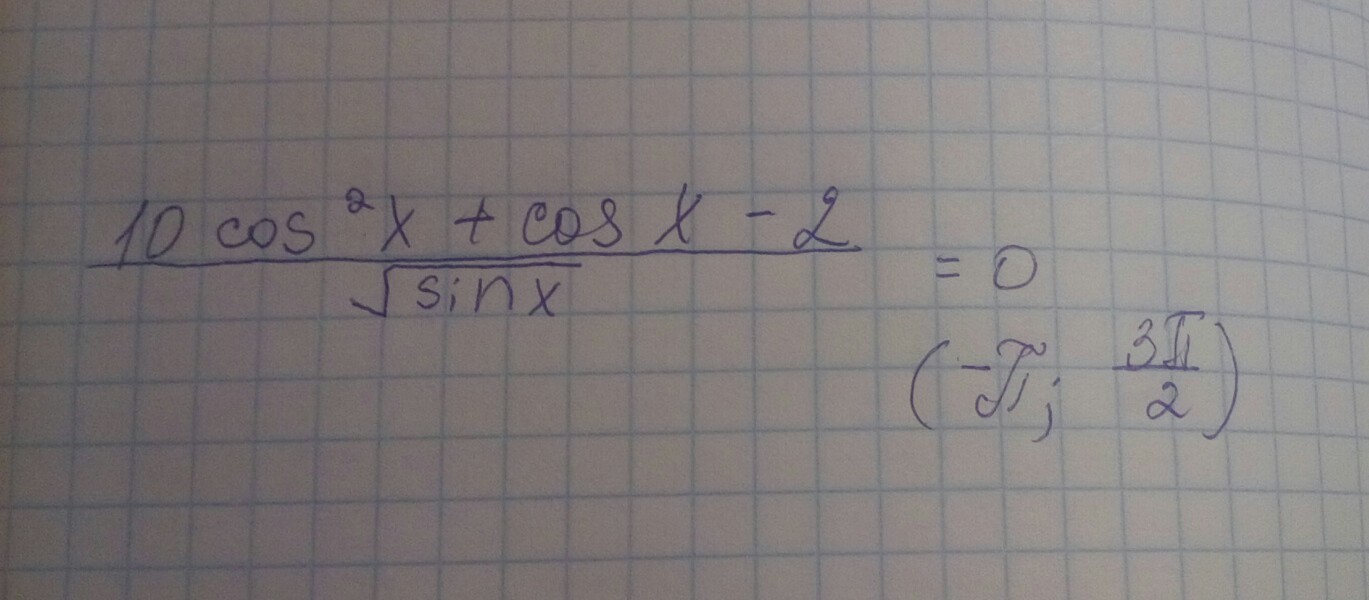 Далее мы решаем уравнение 10cos^2x + cosx - 2 = 0. (1)