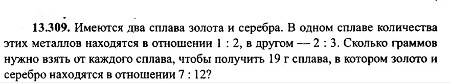 Новый сплав не намного отличается от первого сплава , поэтому берем первого сплава 9 г , а второго 10 г . В первом сплаве : золота - 3 г , серебра - 6 г , во втором сплаве : золота 4 г , серебра - 6 г . В полученном сплаве : золота - ( 3 + 4) = 7 г , серебра - ( 6 + 6) = 12 г , то есть условие выполняется - 7 : 12